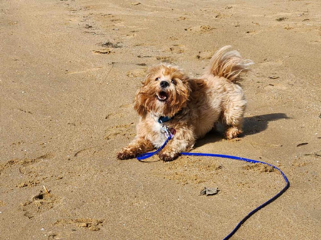 Wirklich toll fanden wir die Situation, in der wir eine etwas tiefere Stelle im Wasser überqueren mussten, um von Meer wieder zurück an den Strand zu gelangen. Irgendwann war es so tief, dass es für laufende Havaneser zu tief war. Spätestens da hatten wir eine wie auch immer geartete Reaktion in Form von Bellen, Winseln, Zurückweichen oder Ähnliches erwartet. Nein, unser Havi ging klaglos, als wäre es das Normalste der Welt, in den Schwimm-Modus über und paddelte neben uns her. Wieder Boden unter den Füßen wurde sich einmal kurz geschüttelt, ein paar Minuten im Sand gewälzt und weiter ging die Reise.