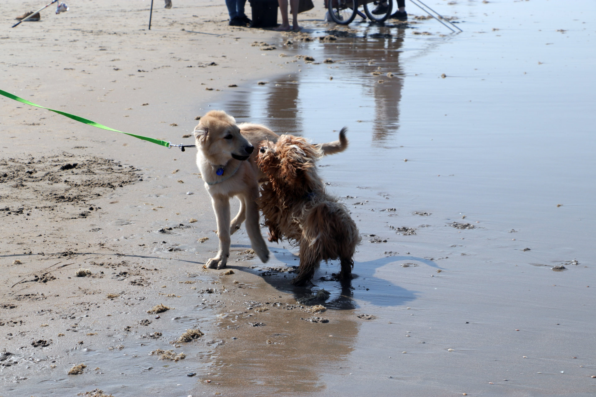 Da in Nordwijk Hunde an allen Stränden ab dem 1. September wieder erlaubt sind, hatte er auch mehr als genug Artgenossen, mit denen er spielen konnte. In diesem Zusammenhang: man muss hier wirklich genau nachsehen: während es in Nordwijk der 1.9. ist, ist es im Nachbardorf (sorry, in der Nachbarstadt) Katwijk der 1.10.
