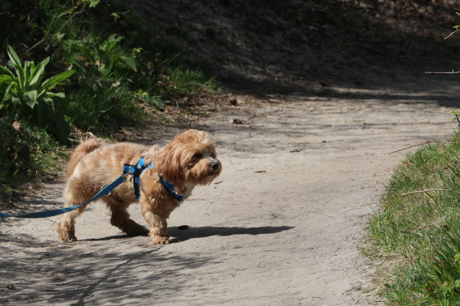Im Nationalpark herrscht bis auf wenige Ausnahmen (hondenlosloopgebied) Leinenpflicht, aber mit genügend langer Leine ist das völlig OK für Koira.