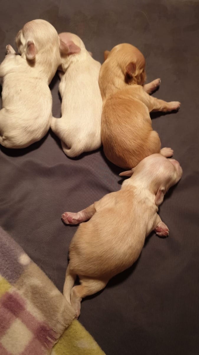 Und dann kam er endlich, der 3.1.2021. Wir schellten an der Tür, von innen begrüßte uns das Hundegebell von Mutter Akira und Großmutter Ellie. Wir betraten das Wohnzimmer und da lagen sie, die kleinen Racker.